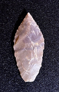 chert. This point is a willow-leaf style, measuring 42mm by 12mm. The