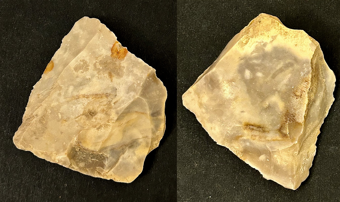 mottled chert with three (Tri-Lateral) modified edges. This