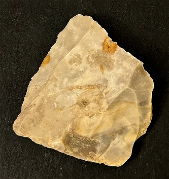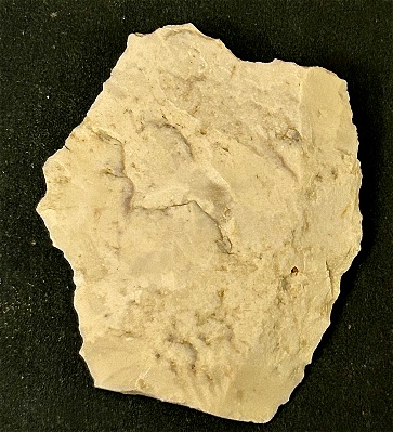 ventral surface. This artifact is of a fine grained light gray mottled chert