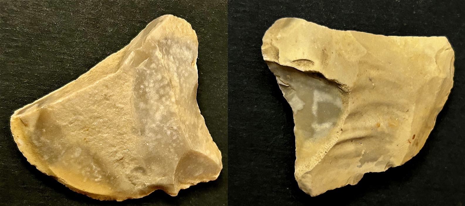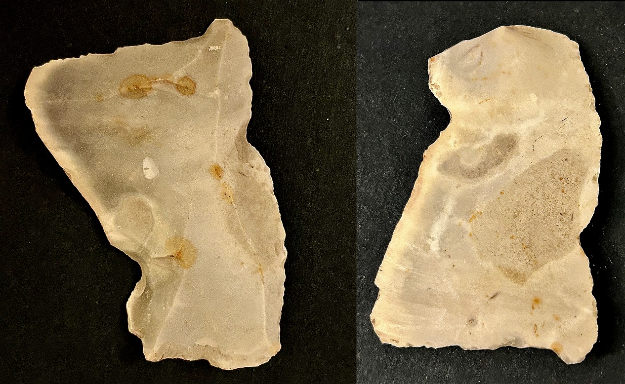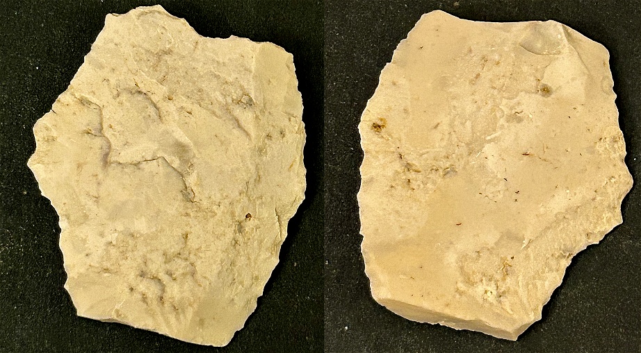 evident from the worn-down retouches. The right side has a chip